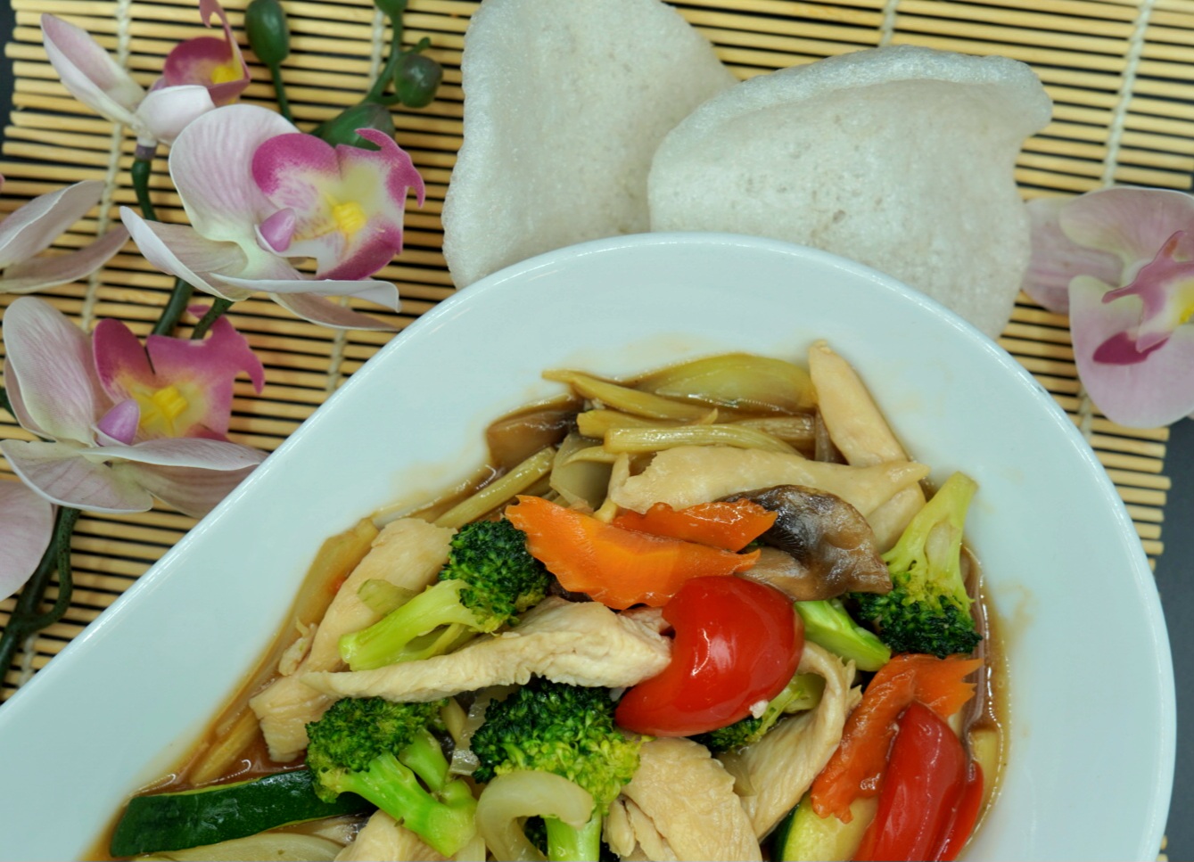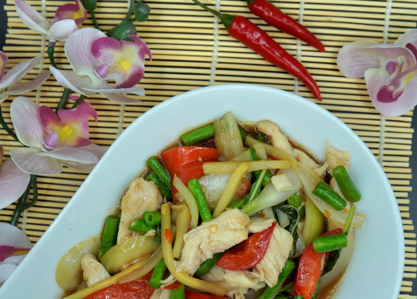 Wok med Thai basil, østersaus og grønnsaker. servers med ris. (G,SK,F,S)
